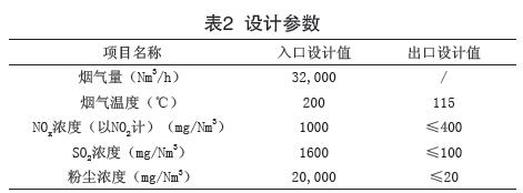 根据原始烟气成分及污染物排放标准,污泥焚烧烟气净化系统的设计脱硫率≥95%,脱硝效率>60%,出口粉尘浓度≤20mg/m3,烟气净化系统的设计参数详见表2。