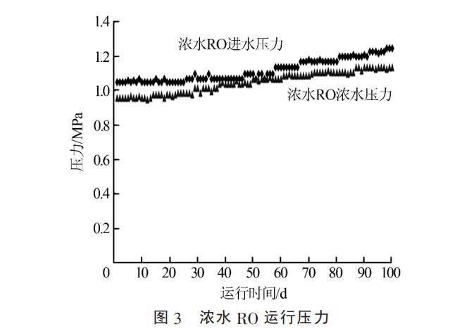 RO 进水压力和浓水压力见图 3。