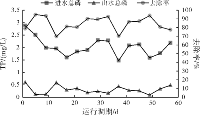 由图 4 可知,进水总磷平均浓度为 2. 0 mg / L,出水 TP 平均浓度为 0. 3 mg / L,出水指标满足设计标准。该工艺的除磷主要是通过高效生物复合强化反应槽中好氧吸收磷和强化微滤中的混凝沉淀达到。该工艺对 TP 平均去除率为 84% 。具体联系污水宝或参见http://www.dowater.com更多相关技术文档。