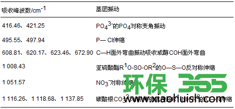 采集间歇运行方式下的进出水进行拉曼光谱分析, 其图谱如图 4所示, 拉曼光谱图解析如表 2所示, 通过比对图谱可知, 进水中波数为416.46 cm-1和出水中波数为421.25 cm-1的峰, 该峰由PO43-的PO4对称变角振动引起, 主要是由于实验用水中含有磷酸盐等营养物质.进水经过处理后, 波数为1 051.57 cm-1的峰明显消失, 而该峰由NO3-对称伸缩引起, 进一步说明系统对硝酸盐氮具有较高的去除能力.出水中明显增强的峰为497.94 cm-1, 说明系统中产生了具有官能团P— Cl的物质.此外, 出水中明显增强的峰分别为608.81、623.46和672.90 cm-1, 醇COH面外弯曲或C—H面外弯曲振动吸收引起, 说明甲烷被氧化形成的中间产物可能主要为醇类物质.Kauffmann等用拉曼光谱测定硝酸盐溶液, 在1 047 cm-1波长处得到特定NO3-的阴离子.占新华等进行水溶性有机物和多环芳烃结合特征的红外光谱研究, 得到在610~690 cm-1吸收峰之间含有酚基功能团的结论.